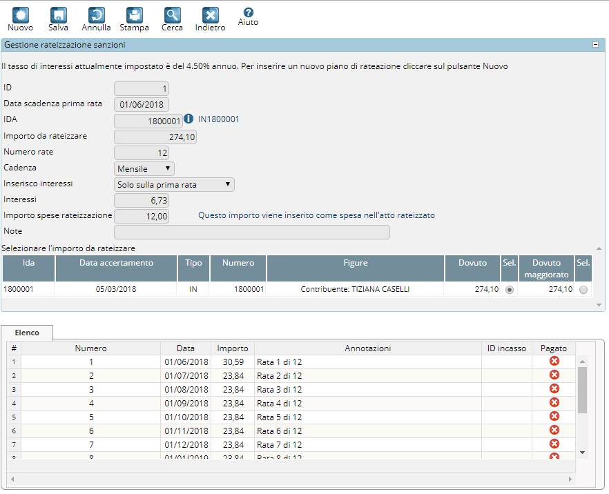 Rateazione di atto singolo